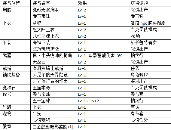 异界出产 暗幕之王6件 (暗影蓄能攻击力+10%)以及牛角必备(现在牛角相当便宜了),其他位置用堆等级的装备填满,完美换装量力而行。