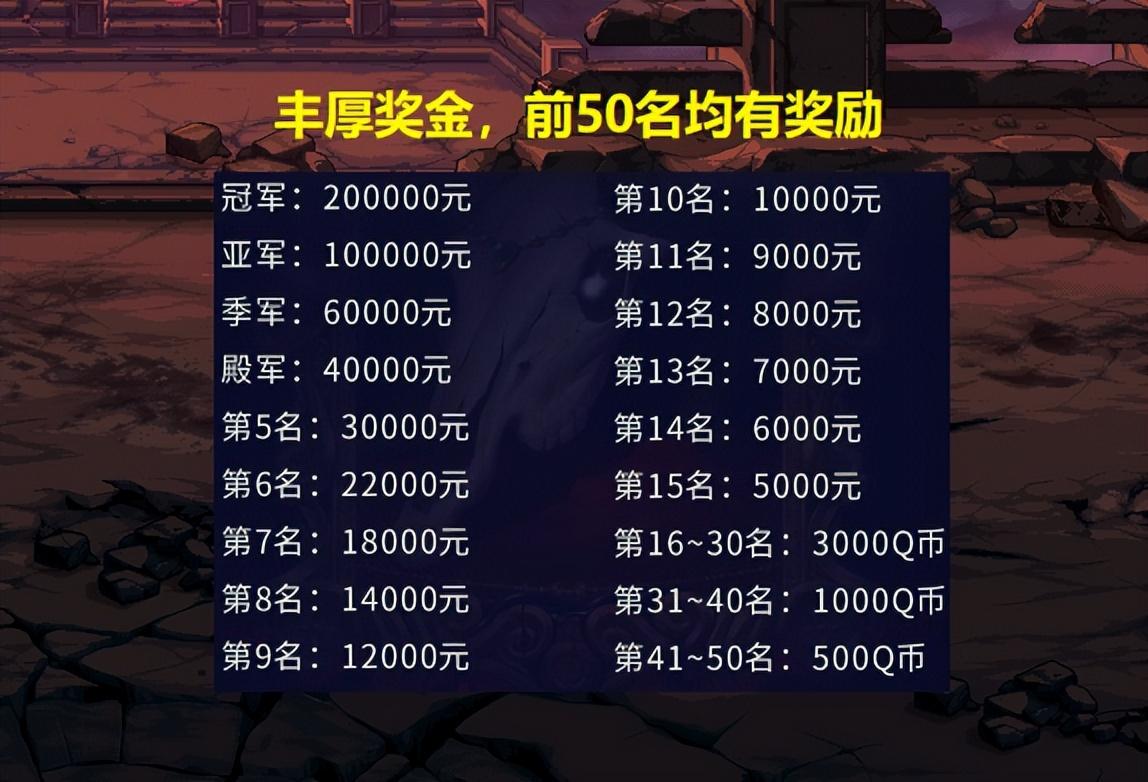本次比赛要求名望5.0以上即可参与,讲道理地说,普通玩家想要冲进前十应该不太可能了,不过只要进入前50名就有奖励,而且最低也有500奖金!
