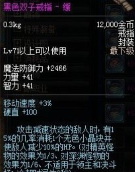 缓戒适合很多攻击频率超高且有减速技能的职业,相比于被红神炒成天价的血戒来讲缓的性价比可是高的不是一星半点,元素的驱散、冰墙、极冰盛宴均不触发双子缓.只有异常状态的减速才能触发双子。几十万的价格就可以买到比红神花上千万换来的还高的使用性,像元素 魔道弹药这种高攻击频率且自带减速技能的职业来讲简直就是神器并且只要几十万!黑色双子戒指-缓绝对是游戏中最冷的装备之一!