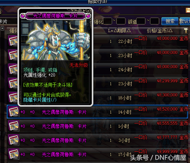 光之偶像荷鲁斯,光属性强化20的宝珠,拍卖行4800万游戏币,还是比较昂贵的一张卡片。