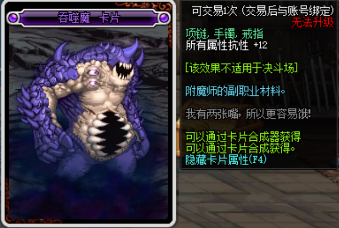 卡片上,安图恩有着8E卡的梗,但后来团本的卡片,很难再达到安图恩时期卡片的价值,这有一定市场因素,同样也因为当时的氪金附魔并没有现在这么全面,而且那个时代附魔也不像现在那样统一规格。