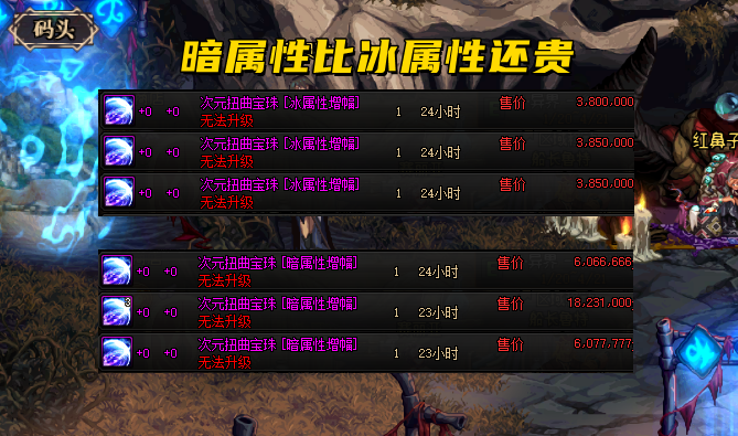 看到这里,走暗属性的勇士们有没有觉得受到冒犯(或者很庆幸),同样是支撑起阿拉德的4大属性,凭什么就单单暗属性如此便宜呢?而且差距还这么大!