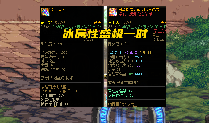 原因是,自从安图恩过后,阿拉德就盛行了一阵冰属性最强的潮流,当时安图恩副本火抗较高,卢克副本又分为光暗两条路线,因此冰属性就成了最百搭的选择,再加上有“死亡冰柱”推波助澜,所以很长一度时间里,冰属性都是最贵的。