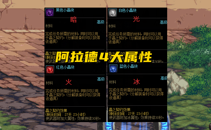 众所周知,阿拉德有4大属性:光、暗、火、冰。走任意属性,只要对应属强够高,那么这个属性就是很强的,除非怪物都抗性,否则4种属性其实并没有优劣之分,但有趣的是,既然地位没有优劣之分,那为何火属性就最便宜呢?