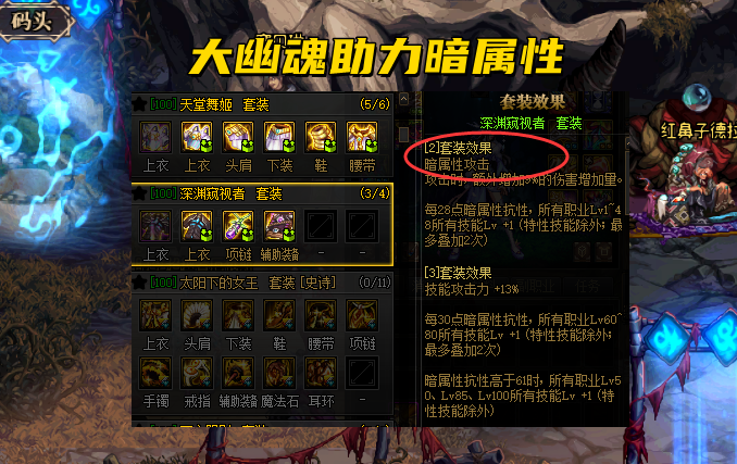 为何呢?因此100版本最顶尖的套装之一,大幽魂系列自带“暗属性攻击”。搜索微信公众号“阿拉德小酒馆”,发送“职业名”,即可了解详细搭配攻略。